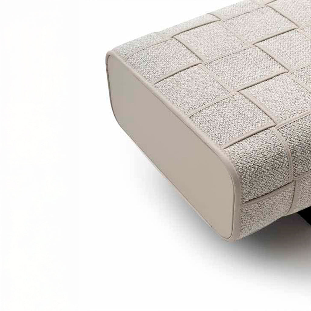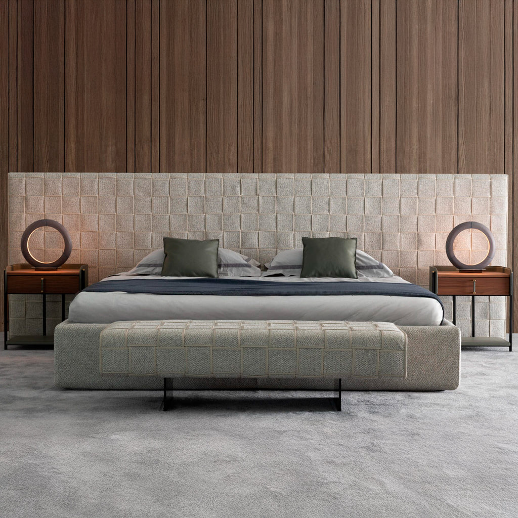 The headboard and frame are crafted with multi-density polyurethane foams for lasting comfort. Upholstered in premium leathers or woven fabrics, elegant piping combinations add character, while glossy black metal legs complete the design with modern contrast.