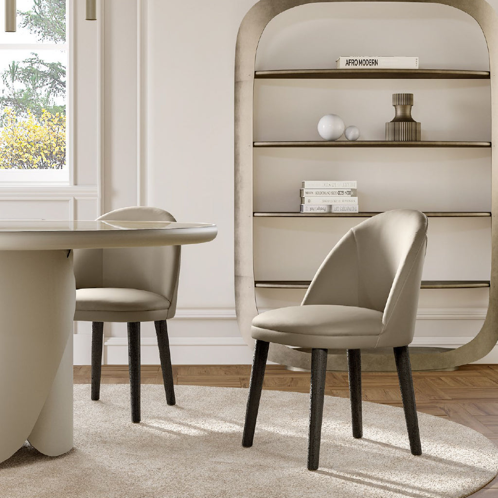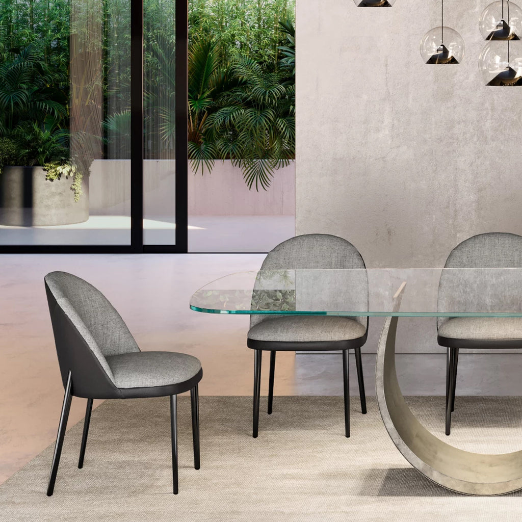 The Minni chair with metal legs is a designer chair defined by classic and evergreen lines, the perfect furnishing complement for residential or working places. The padded backrest and seat, crafted with artisanal skill, offer unparalleled comfort, enveloping you in a soft and welcoming embrace.