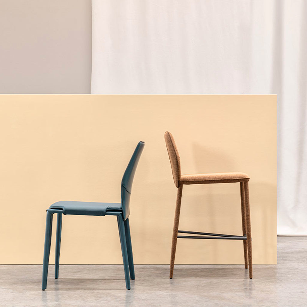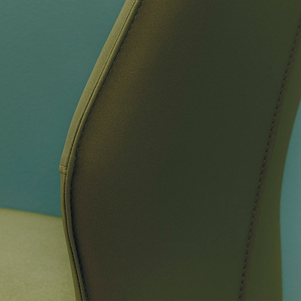 Wind is a chair defined by its minimalist design and elegant, curved silhouette. Fully upholstered in leather, its enveloping seat becomes the star, inviting comfort and intimacy.